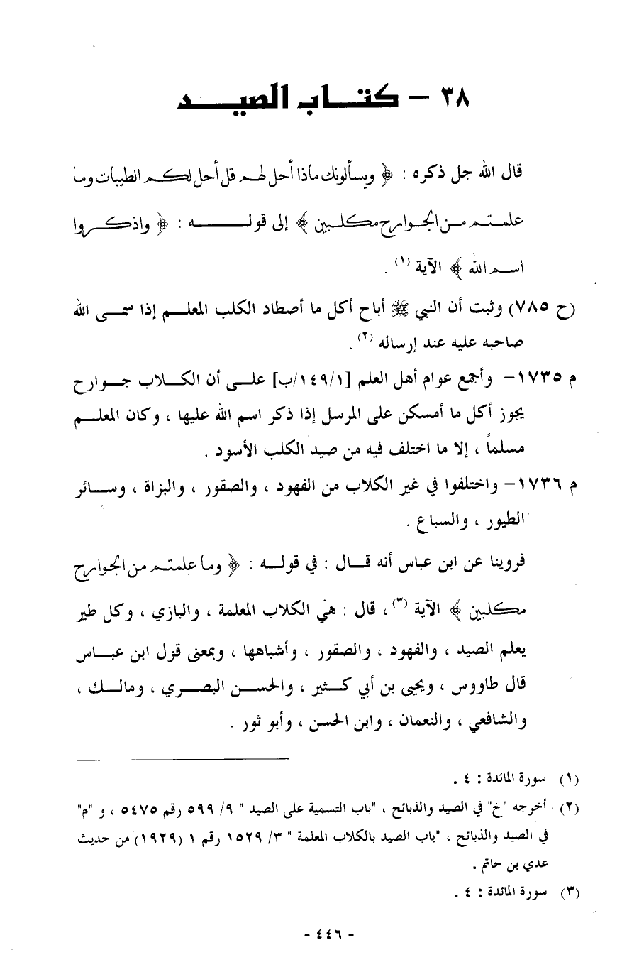م 1736 - واختلفوا في غير الكلاب من الفهود، والصقور، والبزاة، وسائر الطيور، والسباع.