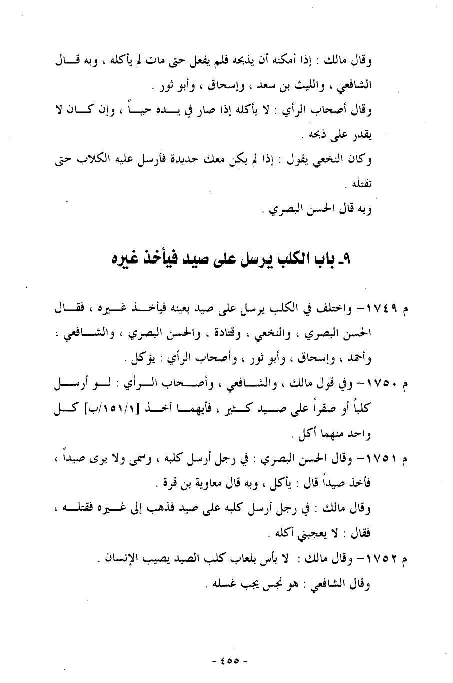 م 1749 - واختلف في الكلب يرسل على صيد بعينه فيأخذ غيره، فقال الحسن البصري، والنخعي، وقتادة، والحسن البصري، والشافعي، وأحمد، وإسحاق، وأبو ثور، وأصحاب الرأي: يؤكل.