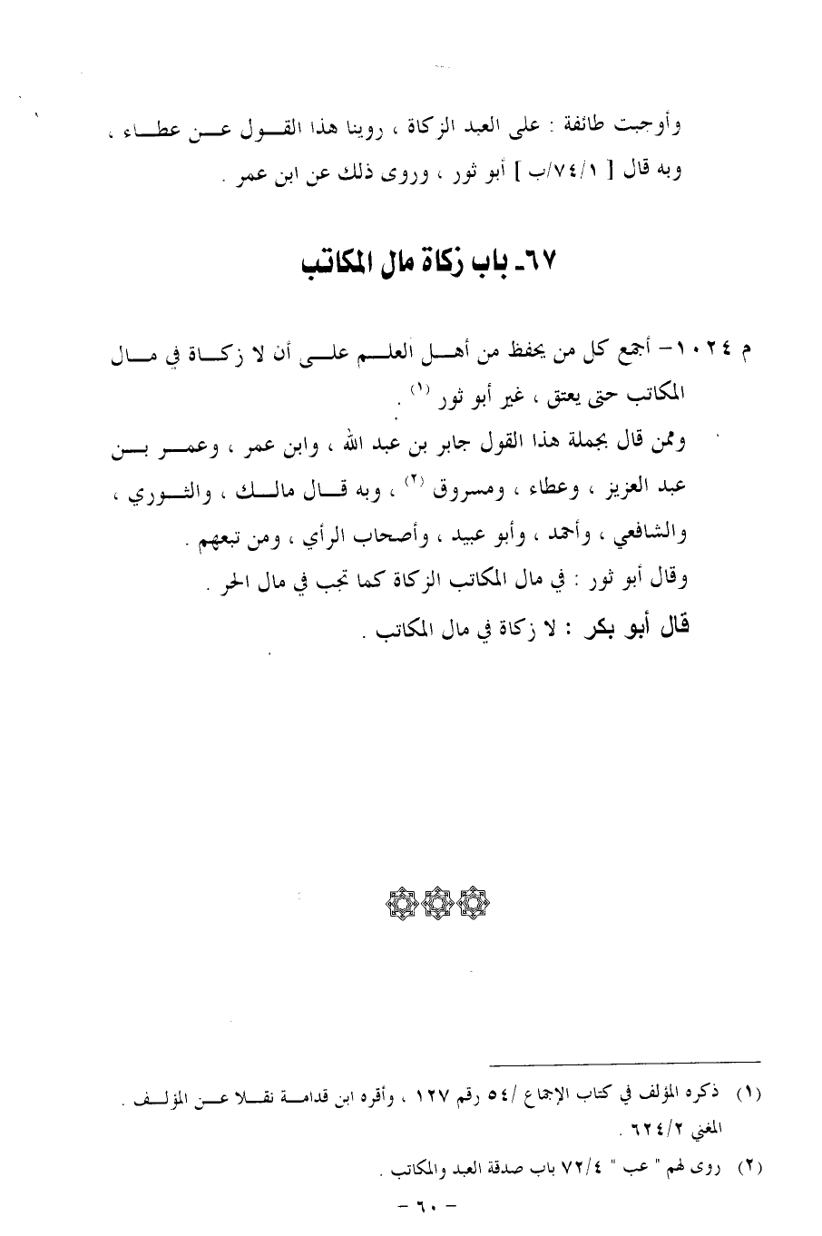م 1024 - أجمع كل من يحفظ من أهل العلم على أن لا زكاة في مال المكاتب حتى يعتق، غير أبو ثور.