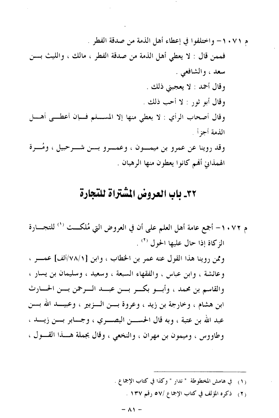 م 1071 - واختلفوا في إعطاء أهل الذمة صدقة الفطر.