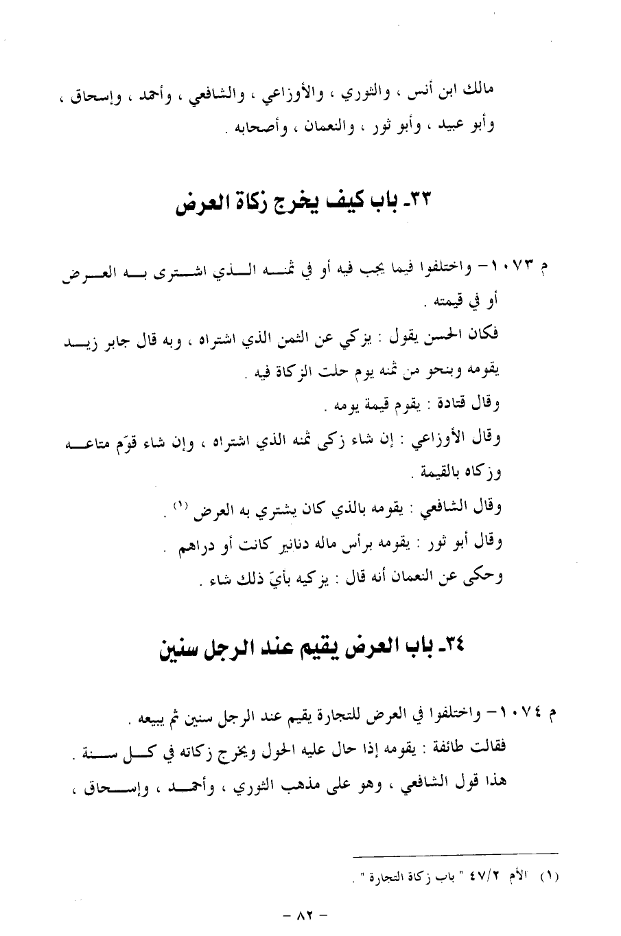 م 1074 - واختلفوا في العرض فللتجارة يقيم عند الرجل سنين ثم يبيعه.