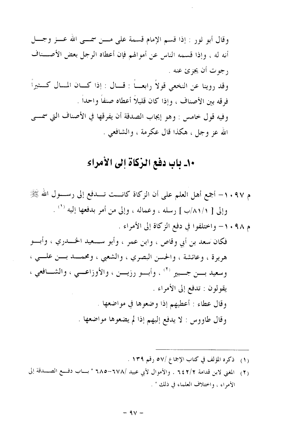 م 1097 - أجمع أهل العلم على أن الزكاة كانت تدفع إلى رسول الله- صلى الله عليه وسلم - وإلى [1/ 81/ب] رسله، وعماله، وإلى من أمر بدفعها إليه.