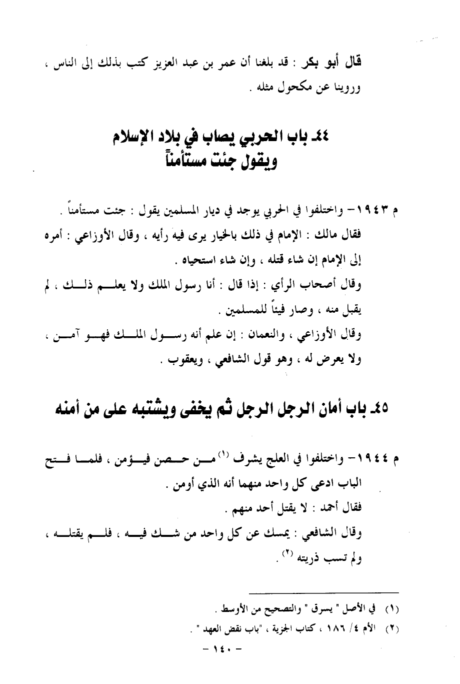 44 - باب الحربي يصاب في بلاد الإسلام ويقول جئت مستأمناً