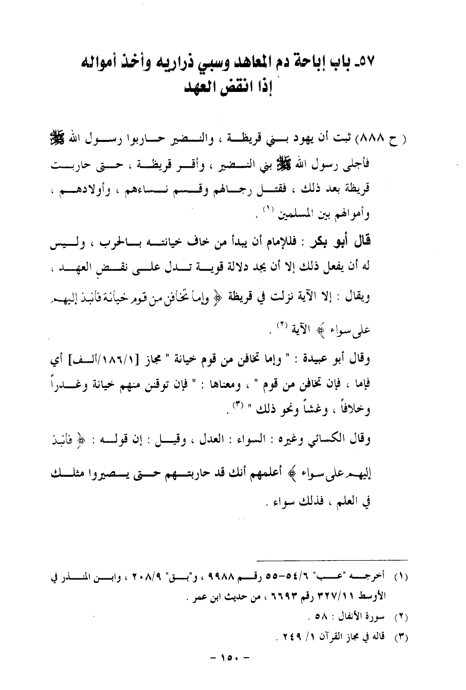 57 - باب إباحة دم المعاهد وسبي ذراريه وأخذ أمواله إذا انقض العهد