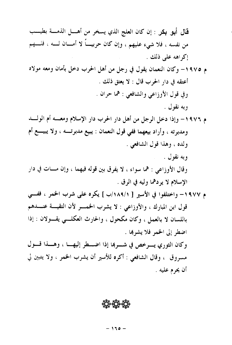 م 1975 - وكان النعمان يقول في رجل من أهل الحرب دخل بأمان ومعه مولاه أعتقه في دار الحرب قال: لا يعتق ذلك.