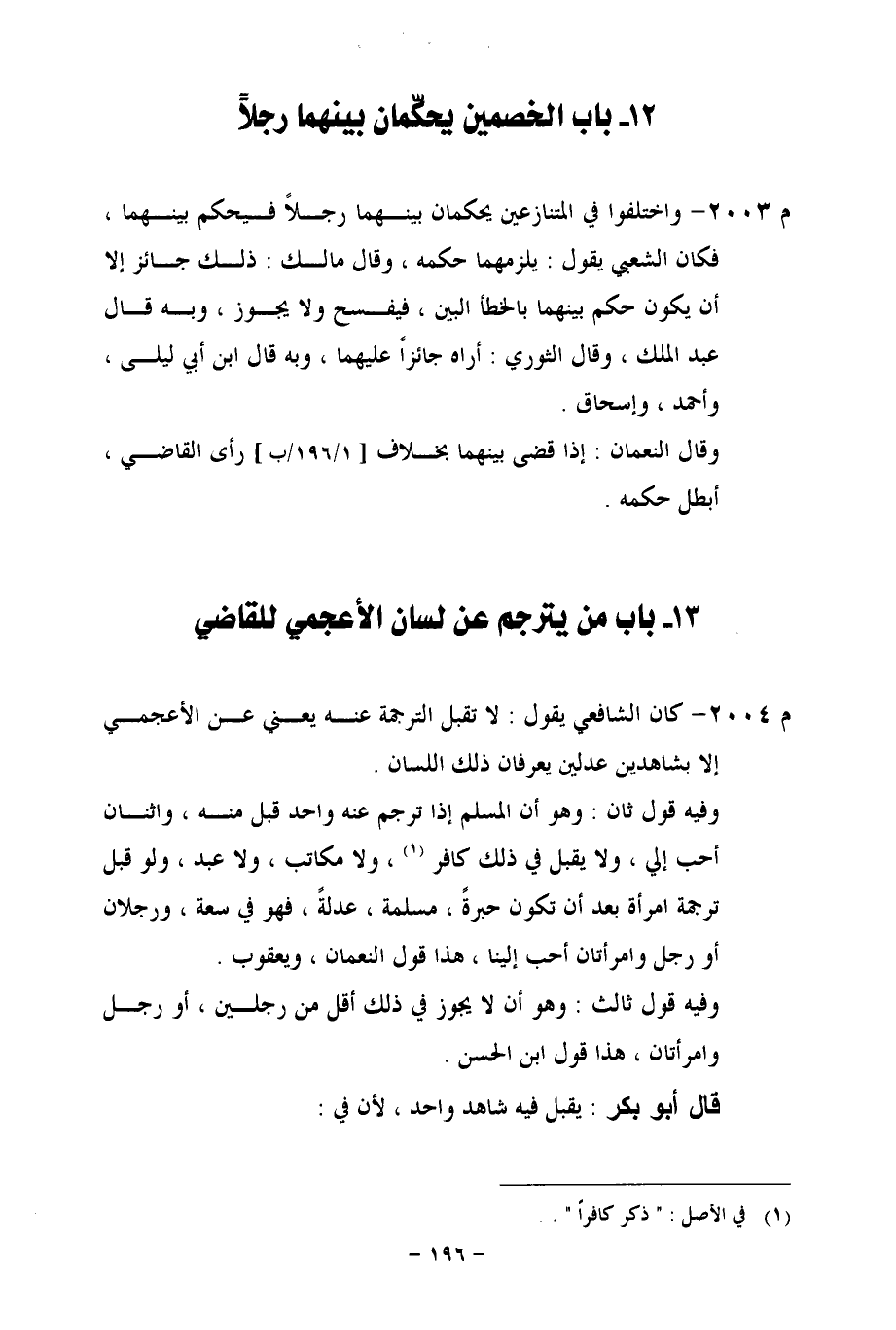 م 2004 - كان الشافعي يقول: لا تقبل الترجمة عنه يعني عن الأعجمي إلا بشاهدين عدلين يعرفان ذلك اللسان.