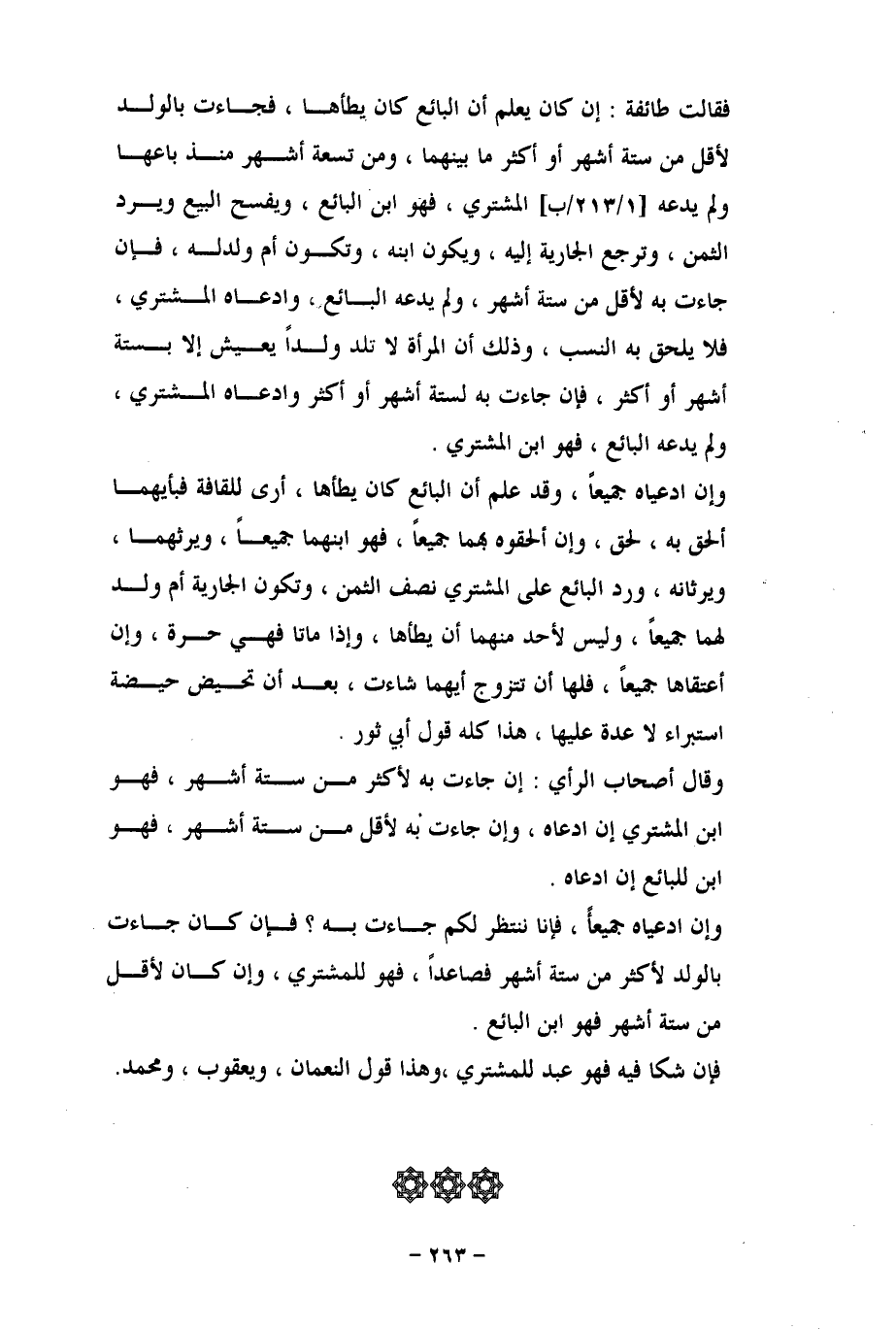 فقالت طائفة: إن كان يعلم أن البائع كان يطأها، فجاءت بالولد لأقل من ستة أشهر أو أكثر ما بينهما، ومن تسعة أشهر منذ باعها ولم يدعه [1/ 213/ب] المشتري، فهو ابن البائع، ويفسخ البيع ويرد الثمن، وترجع الجارية إليه، ويكون ابنه، وتكون أم ولد له، فإن جاءت به لأقل من ستة أشهر، ولم يدعه البائع، وادعاه المشتري، فلا يلحق به النسب، وذلك أن المرأة لا تلد ولداً يعيش إلا بستة أشهر أو أكثر، فإن جاءت به لستة أشهر أو أكثر وادعاه المشتري، ولم يدعه البائع، فهو ابن المشتري.