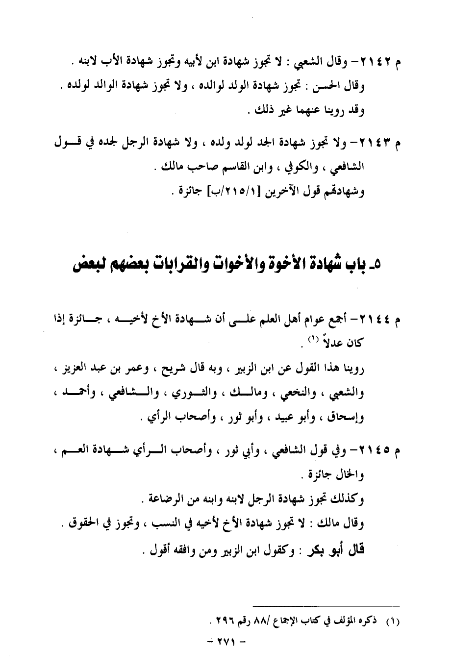م 2144 - أجمع عوام أهل العلم على أن شهادة الأخ لأخيه، جائزة إذا كان عدلاً.