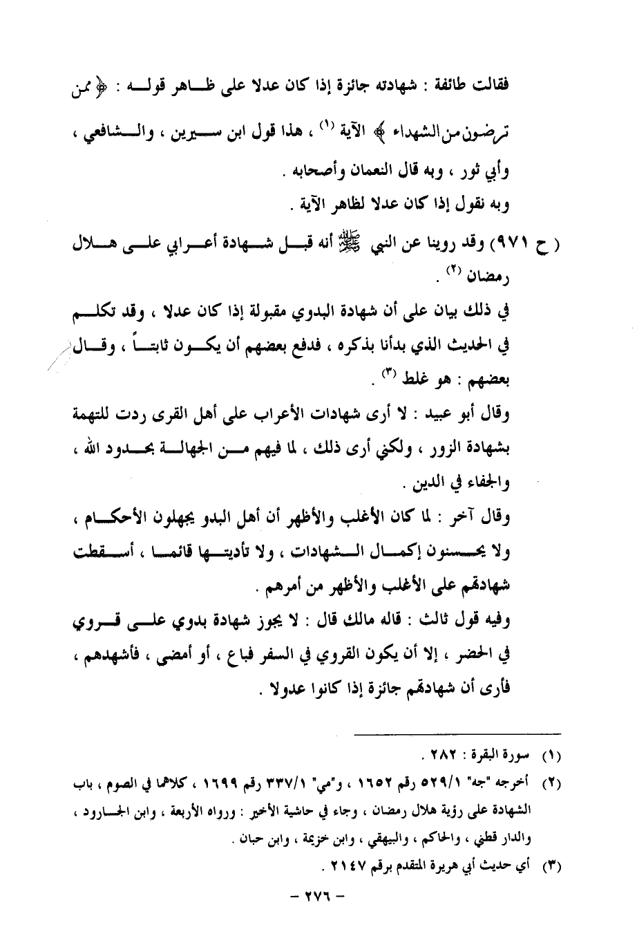 (ح 971) وقد روينا عن النبي - صلى الله عليه وسلم - أنه قبل شهادة أعرابي على هلال رمضان.