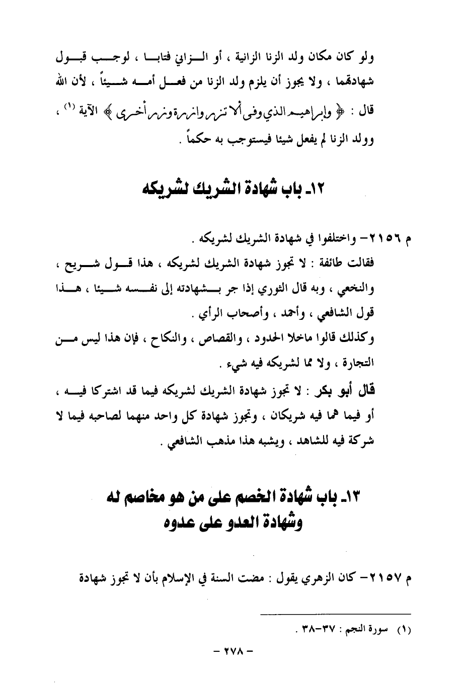 م 2157 - كان الزهري يقول: مضت السنة في الإسلام بأن لا تجوز شهادة
