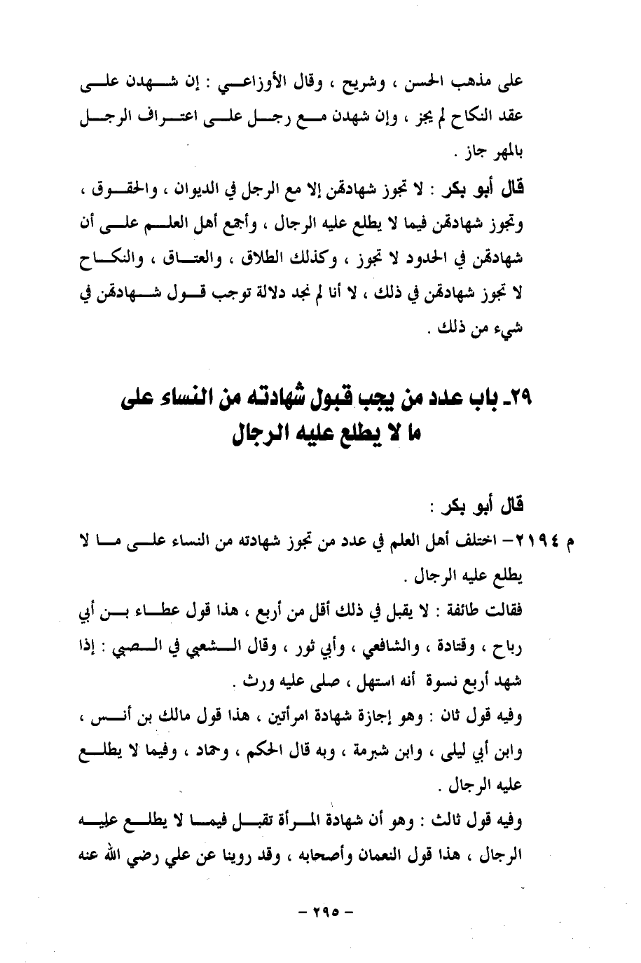 م 2194 - اختلف أهل العلم في عدد من تجوز شهادته من النساء على ما لا يطلع عليه الرجال.