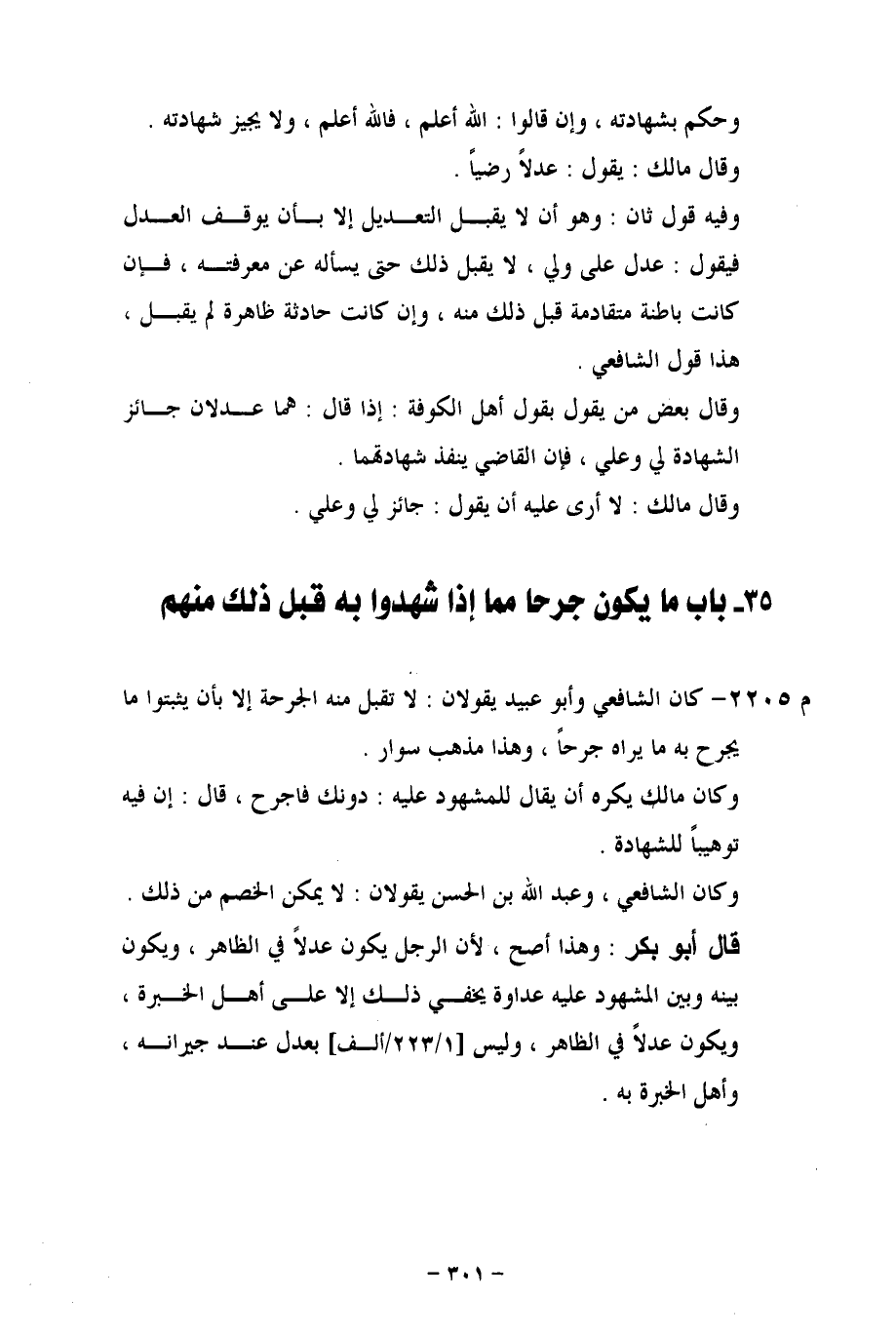 35 - كان الشافعي وأبو عبيد يقولان: لا تقبل منه الجرحة إلا بأن يثبتوا ما يجرح به ما يراه جرحاً، وهذا مذهب سوار.
