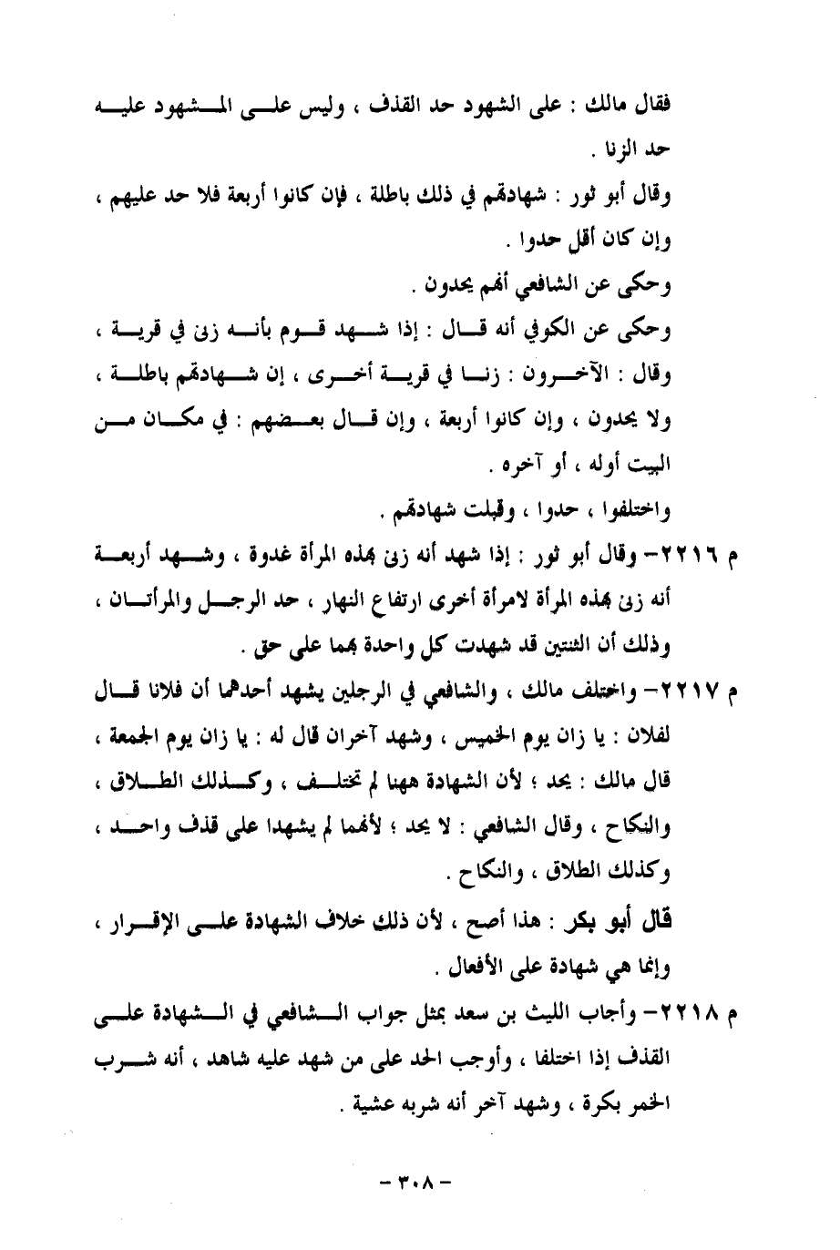 م 2218 - وأجاب الليث بن سعد بمثل جواب الشافعي في الشهادة على القذف إذا اختلفا، وأوجب الحد على من شهد عليه شاهد، أنه شرب الخمر بكرة، وشهد آخر أنه شربه عشية.