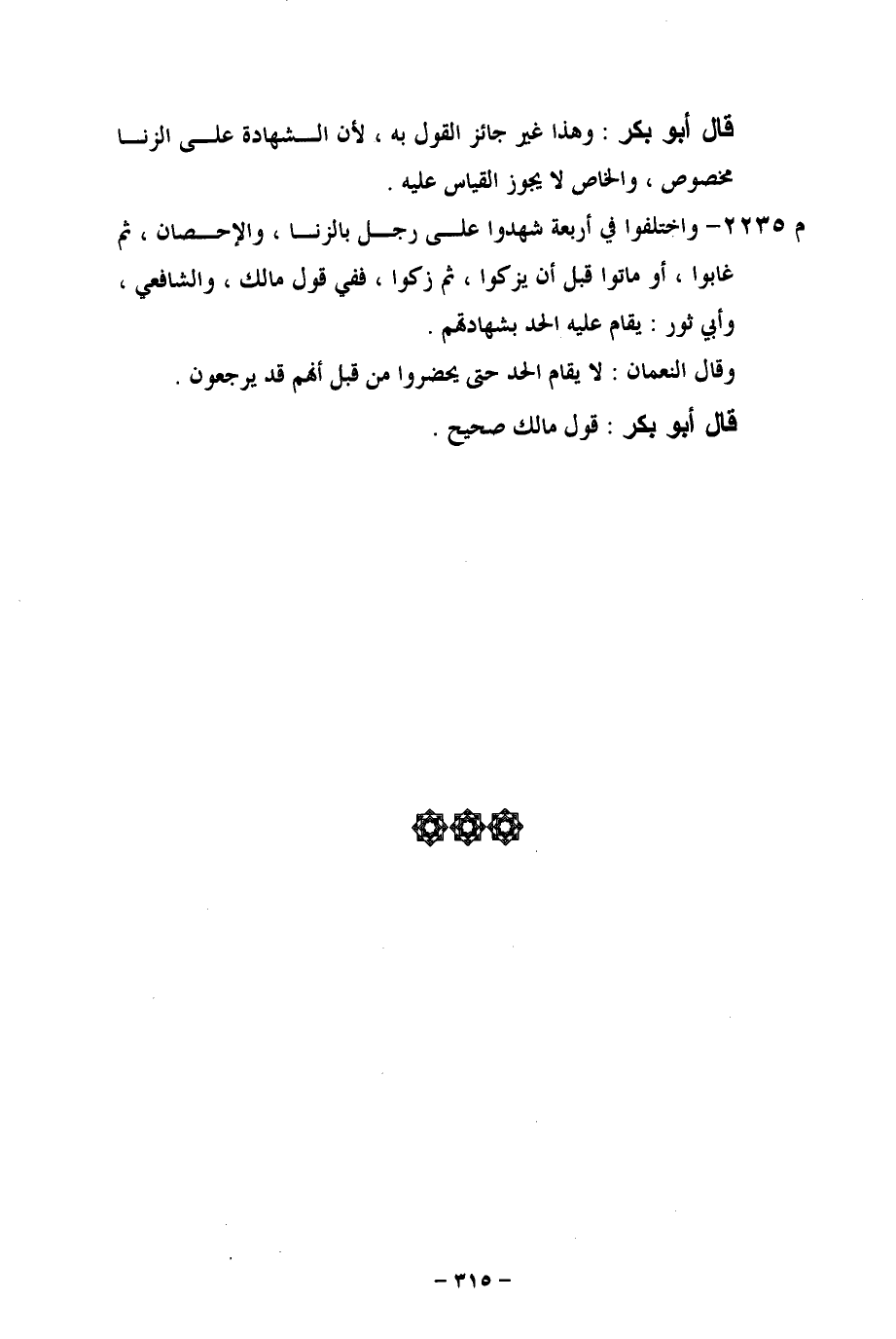 م 2235 - واختلفوا في أربعة شهدوا على رجل بالزنا، والإحصان، ثم غابوا، أو ماتوا قبل أن يزكوا، ثم زكوا، ففي قول مالك، والشافعي، وأبي ثور: يقام عليه الحد بشهادتهم.