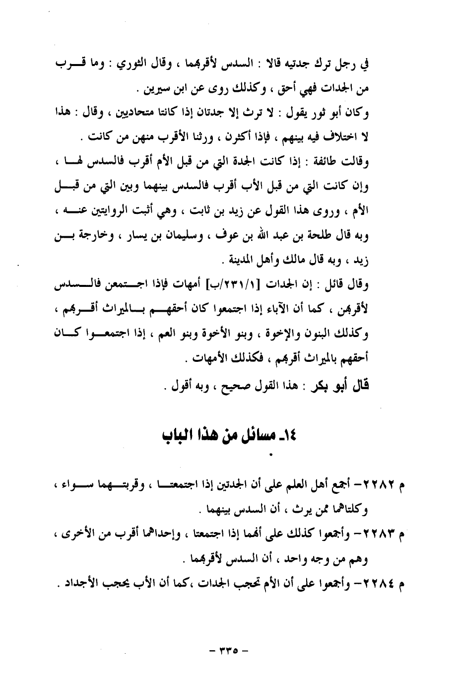 م 2284 - وأجمعوا على أن الأم تحجب الجدات، كما أن الأب يحجب الأجداد.