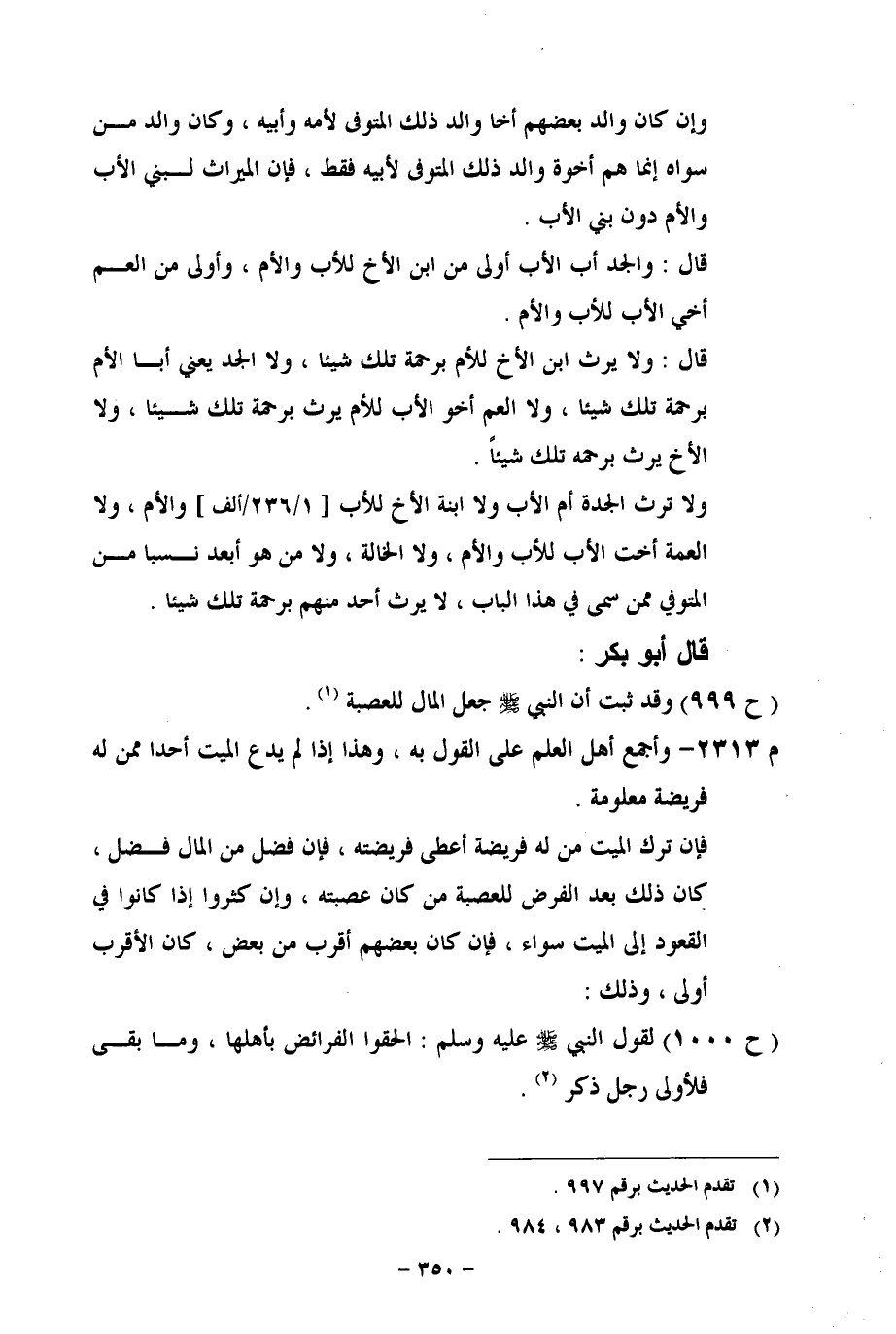 (ح 999) وقد ثبت أن النبي- صلى الله عليه وسلم - جعل المال للعصبة.
