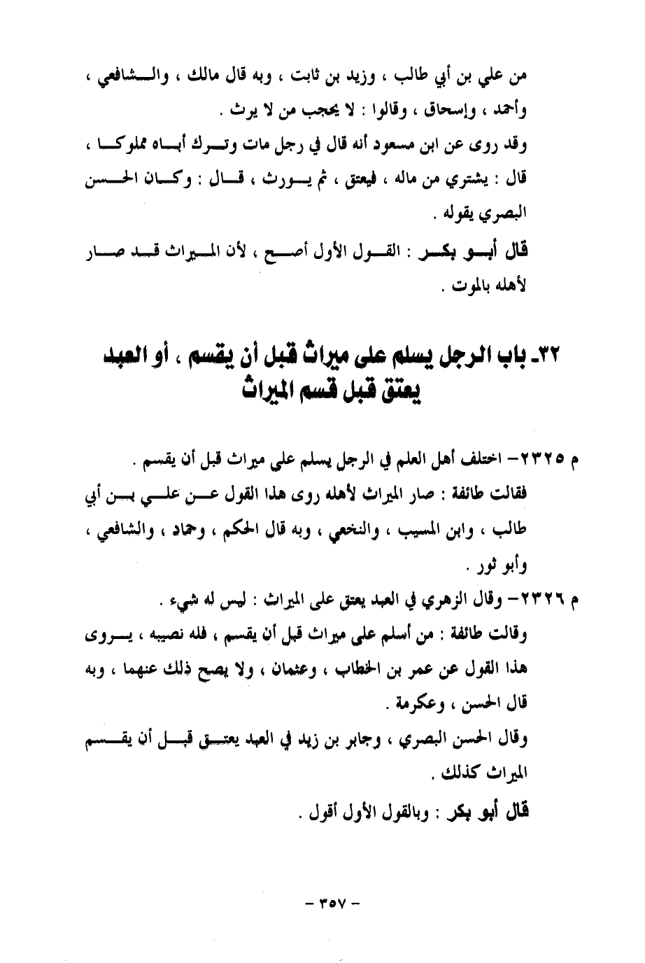 32 - باب الرجل يسلم على ميراث قبل أن يقسم، أو العبد يعتق قيل الميراث