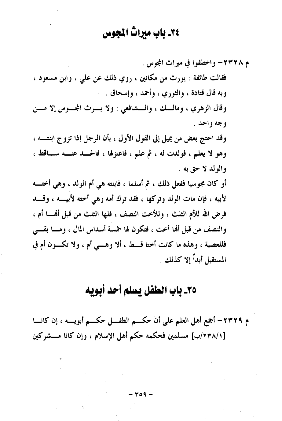 وقال الزهري، ومالك، والشافعي: ولا يرث المجوس إلا من وجه واحد.
