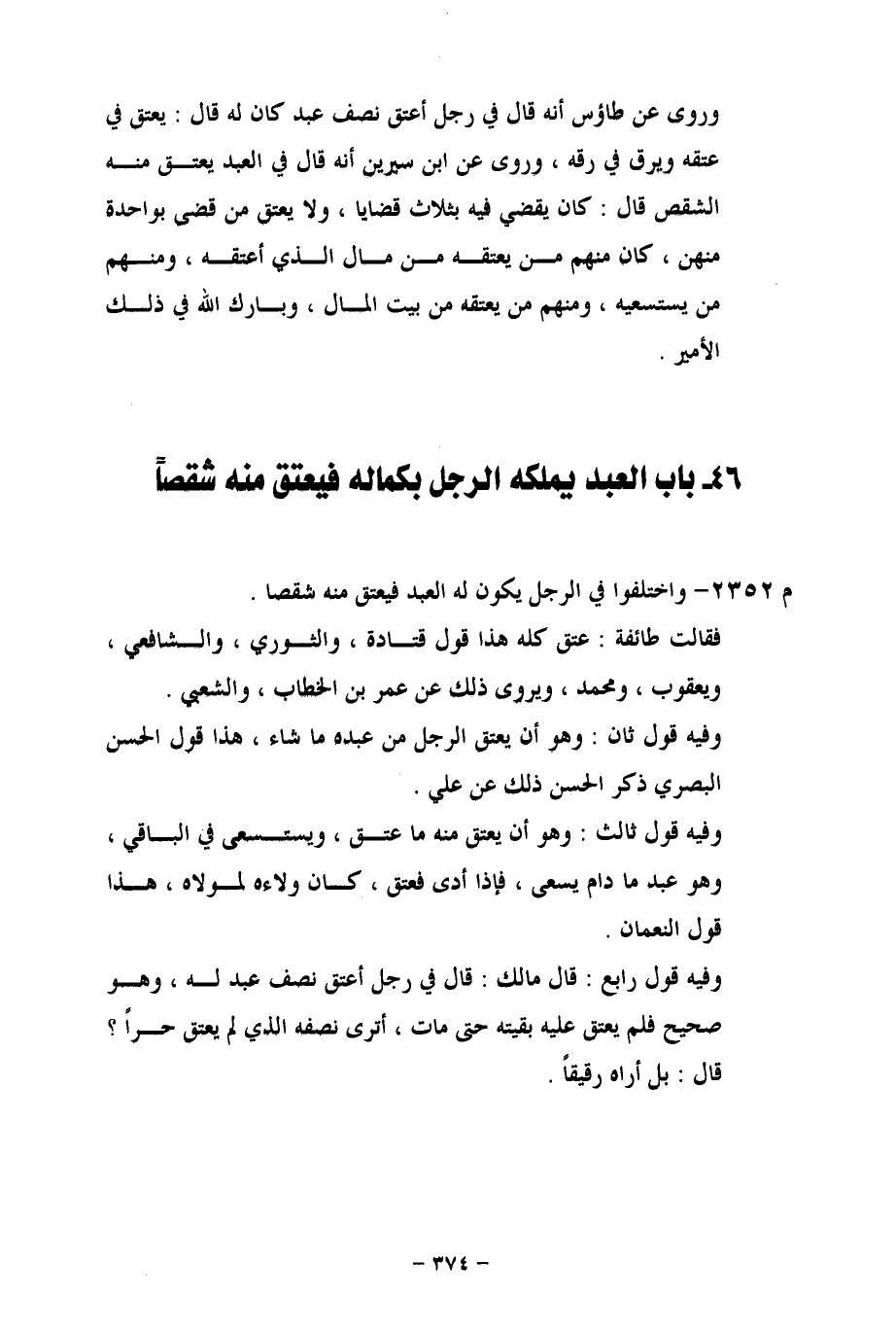 م 2352 - واختلفوا في الرجل يكون له العبد فيعتق منه شقصا.