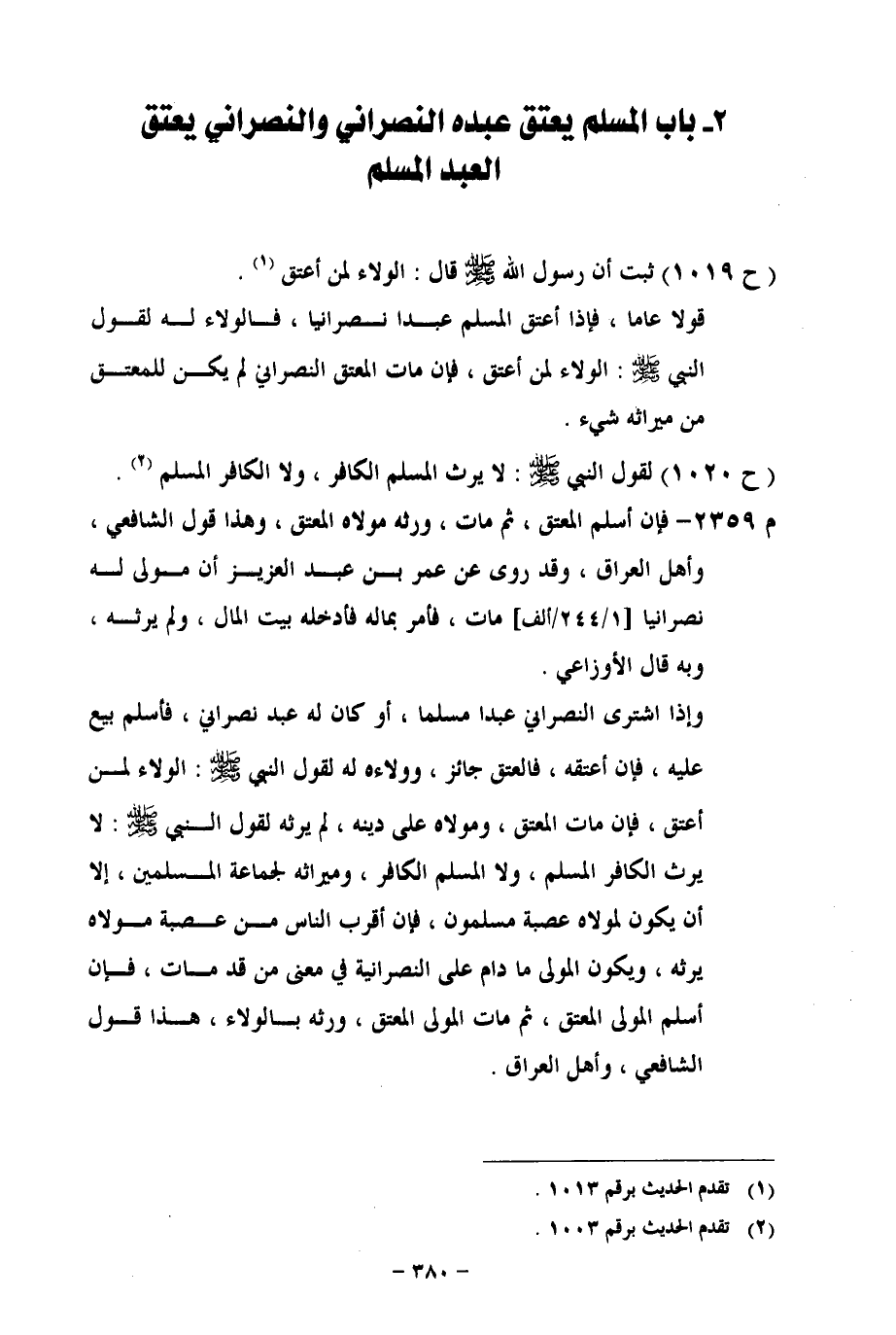 2 - باب المسلم يعتق عبده النصراني والنصراني يعتق العبد المسلم