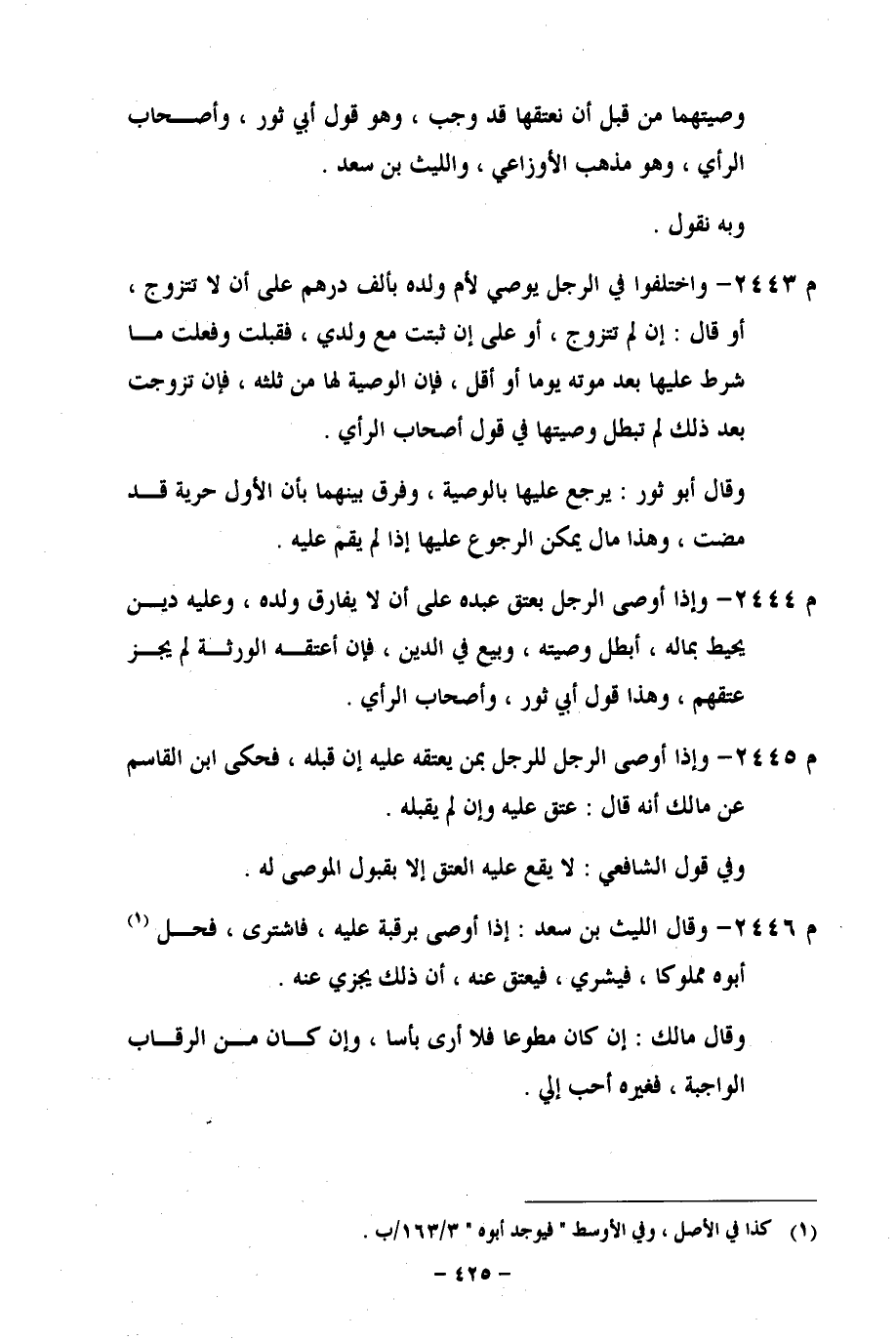 وصيتهما من قبل أن نعتقها قد وجب، وهو قول أبي ثور، وأصحاب الرأي، وهو مذهب الأوزاعي، والليث بن سعد.