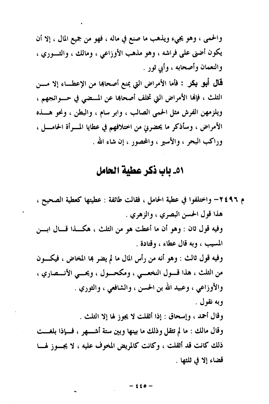 م 2496 - واختلفوا في عطية الحامل، فقالت طائفة: عطيتها كعطية الصحيح، هذا قول الحسن البصري، والزهري.