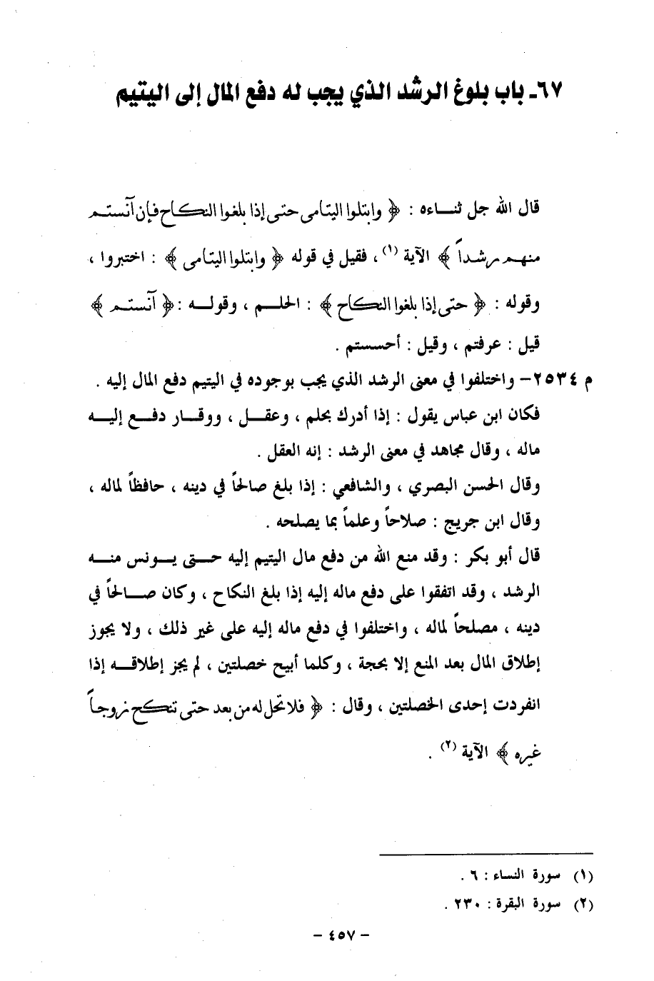 67 - باب بلوغ الرشد الذي يجب له دفع المال إلى اليتيم