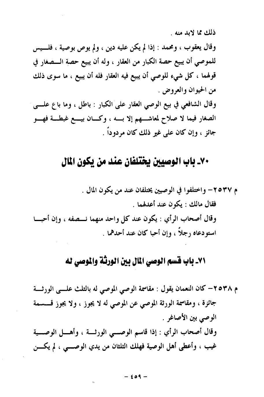 71 - باب قسم الوصي المال بين الورثة والموصي له