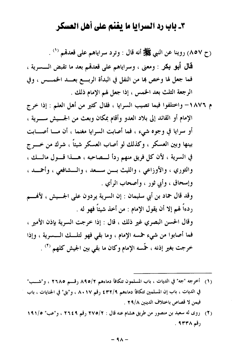 (ح 857) روينا عن النبي - صلى الله عليه وسلم - أنه قال: وترد سراياهم على قعدتهم.