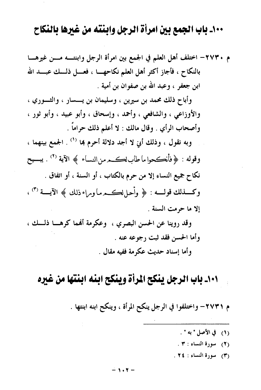 100 - باب الجمع بين امرأة الرجل وابنته من غيرها بالنكاح