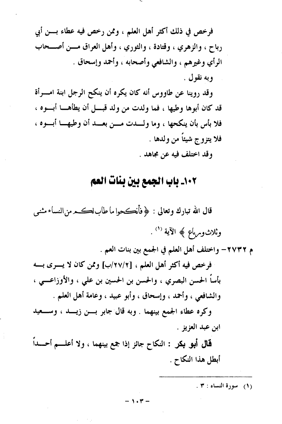 102 - باب الجمع بين بنات العم