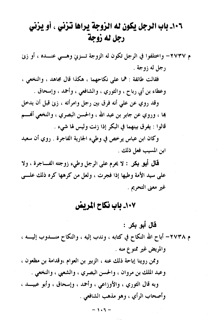 م 2737 - واختلفوا في الرجل تكون له الزوجة تزني وهي عنده، أو زنى رجل له زوجة.