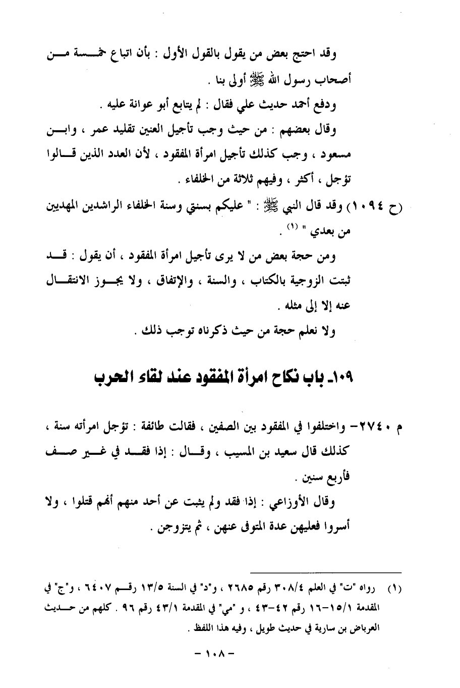 109 - باب نكاح امرأة المفقود عند لقاء الحرب
