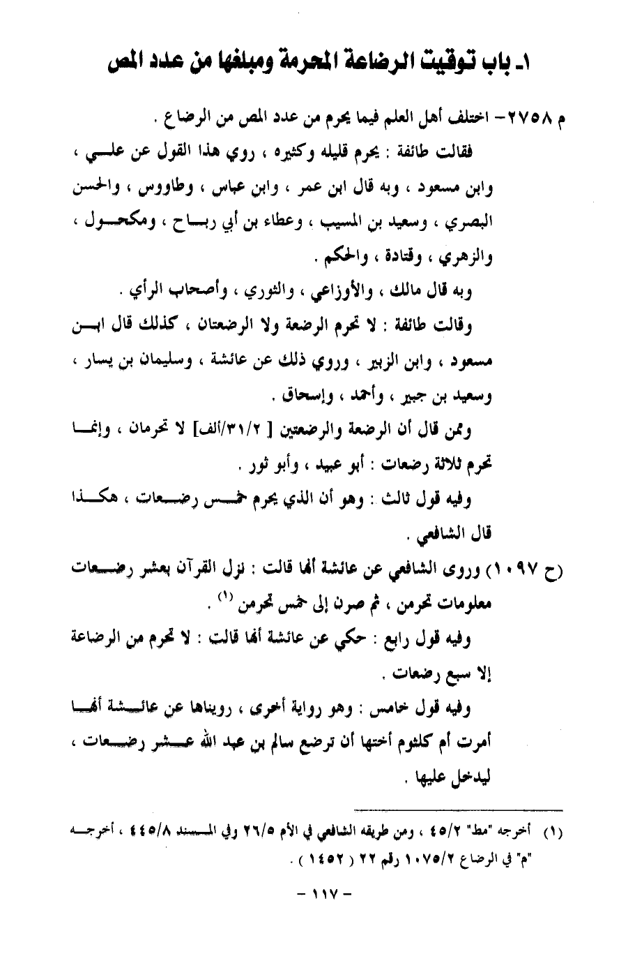 1 - باب توقيت الرضاعة المحرمة ومبلغها من عدد المص