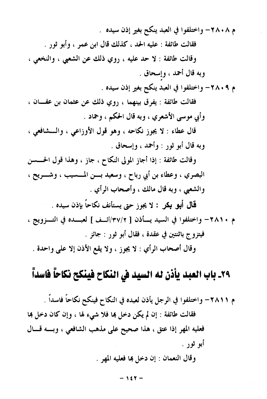 م 2809 - واختلفوا في العبد ينكح بغير إذن سيده.
