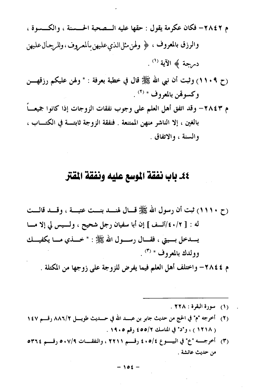 (ح 1109) وثبت أن نبي الله - صلى الله عليه وسلم - قال في خطبة بعرفة: "ولهن عليكم رزقهن وكسوتهن بالمعروف".