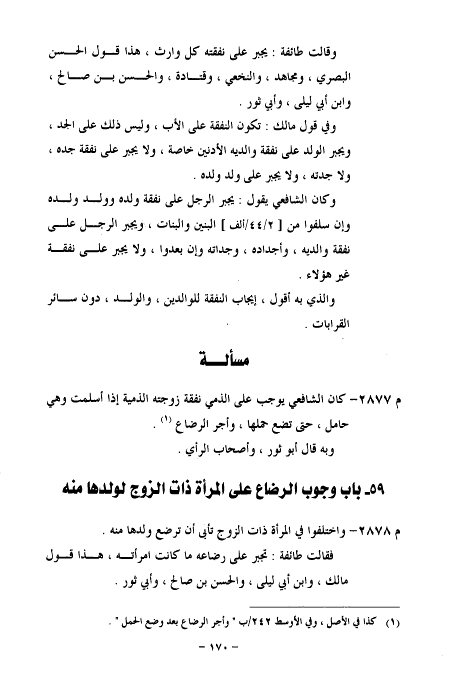 م 2877 - كان الشافعي يوجب على الذمي نفقة زوجته الذمية إذا أسلمت وهي حامل، حتى تضع حملها، وأجر الرضاع (¬1).