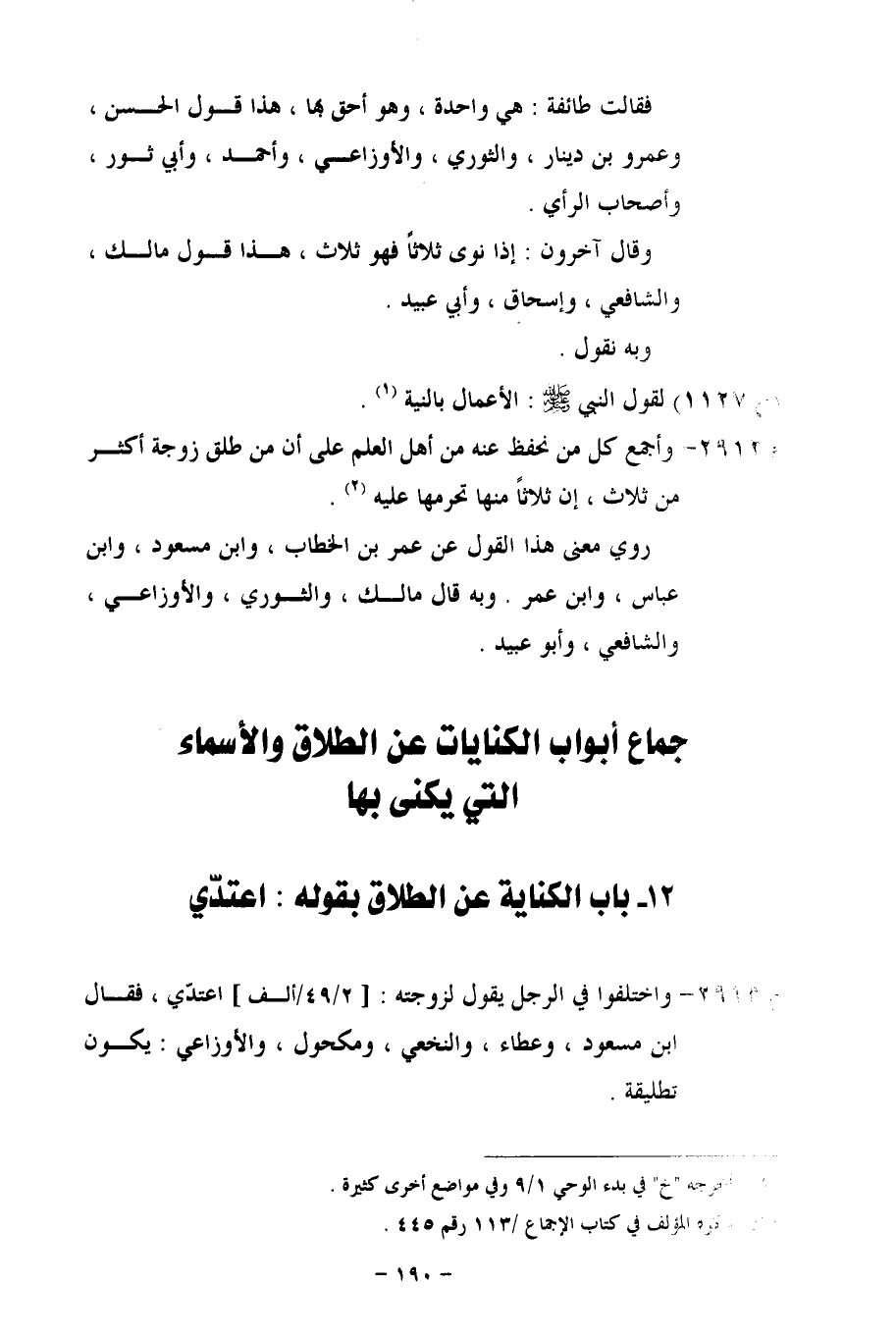 م 2913 - واختلفوا في الرجل يقول لزوجته: [2/ 49/ألف] اعتدّي، فقال ابن مسعود، وعطاء، والنخعي، ومكحول، والأوزاعي: يكون تطليقة.
