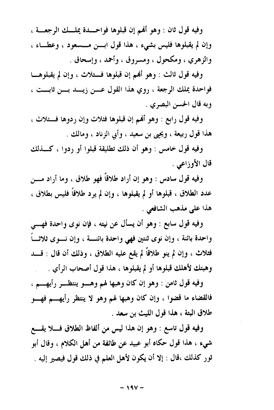 وفيه قول تاسع: وهو إن هذا ليس من ألفاظ الطلاق فلا يقع شيء، هذا قول حكاه أبو عبيد عن طائفة من أهل الكلام، وقال أبو ثور كذلك، قال: إلا أن يكون لأهل العلم في ذلك قول فيصر إليه.