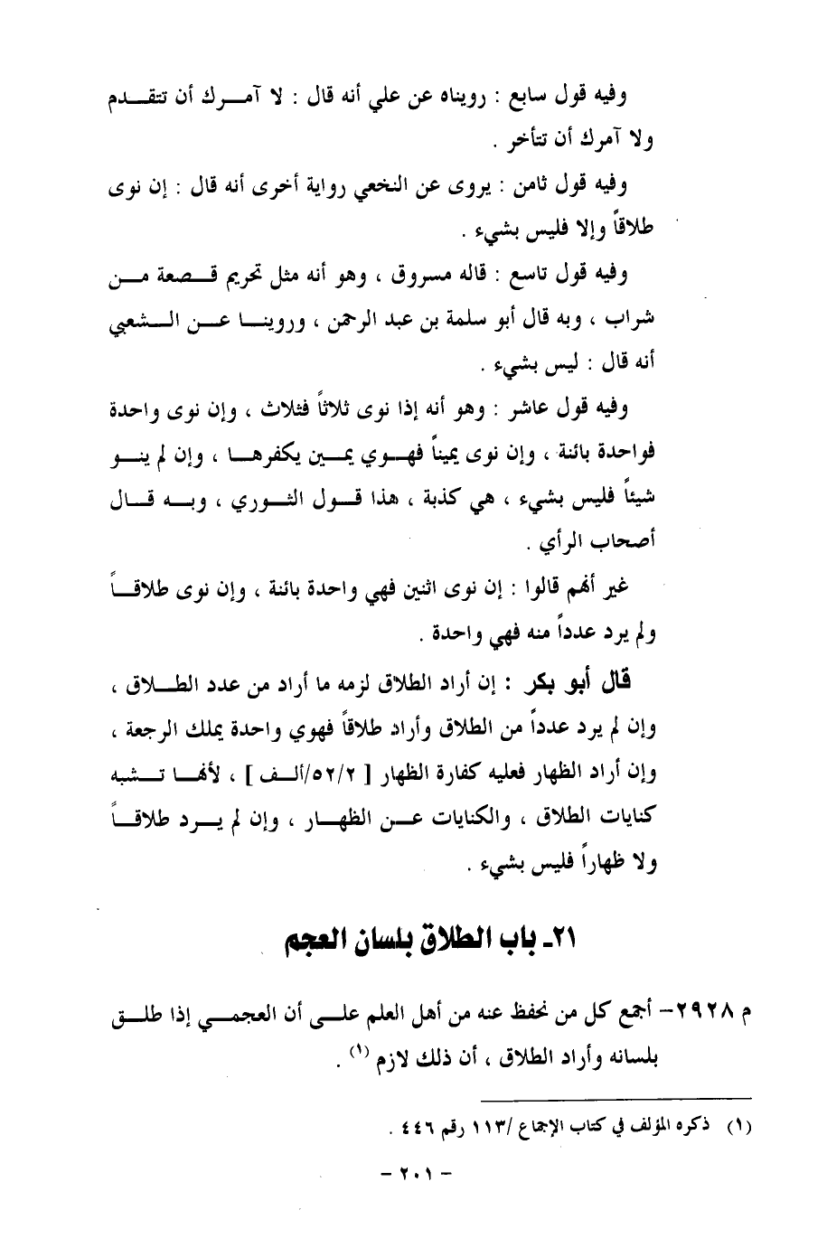 م 2928 - أجمع كل من نحفظ عنه من أهل العلم على أن العجمي إذا طلق بلسانه وأراد الطلاق، أن ذلك لازم.