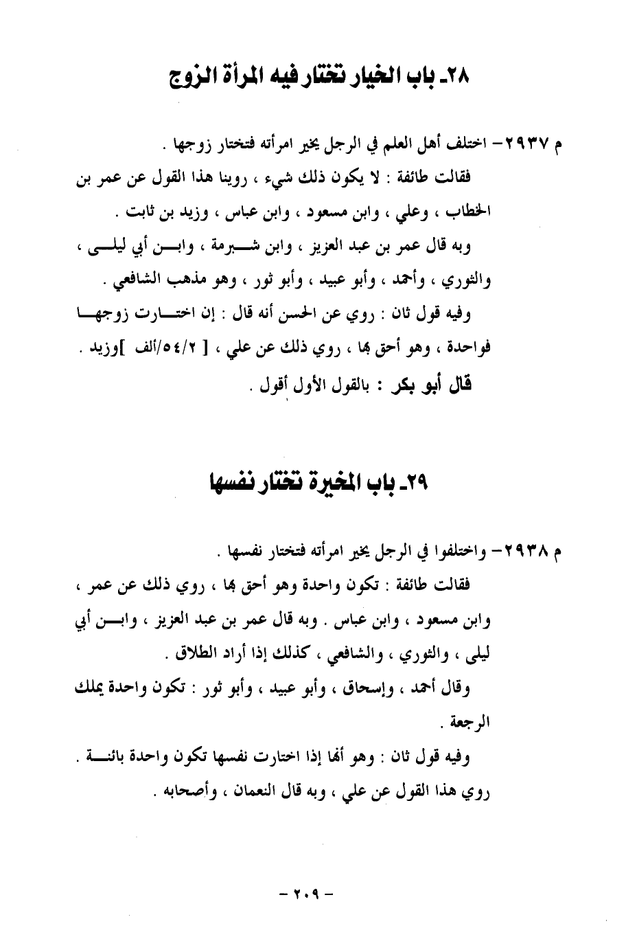 م 2938 - واختلفوا في الرجل يخير امرأته فتختار نفسها.