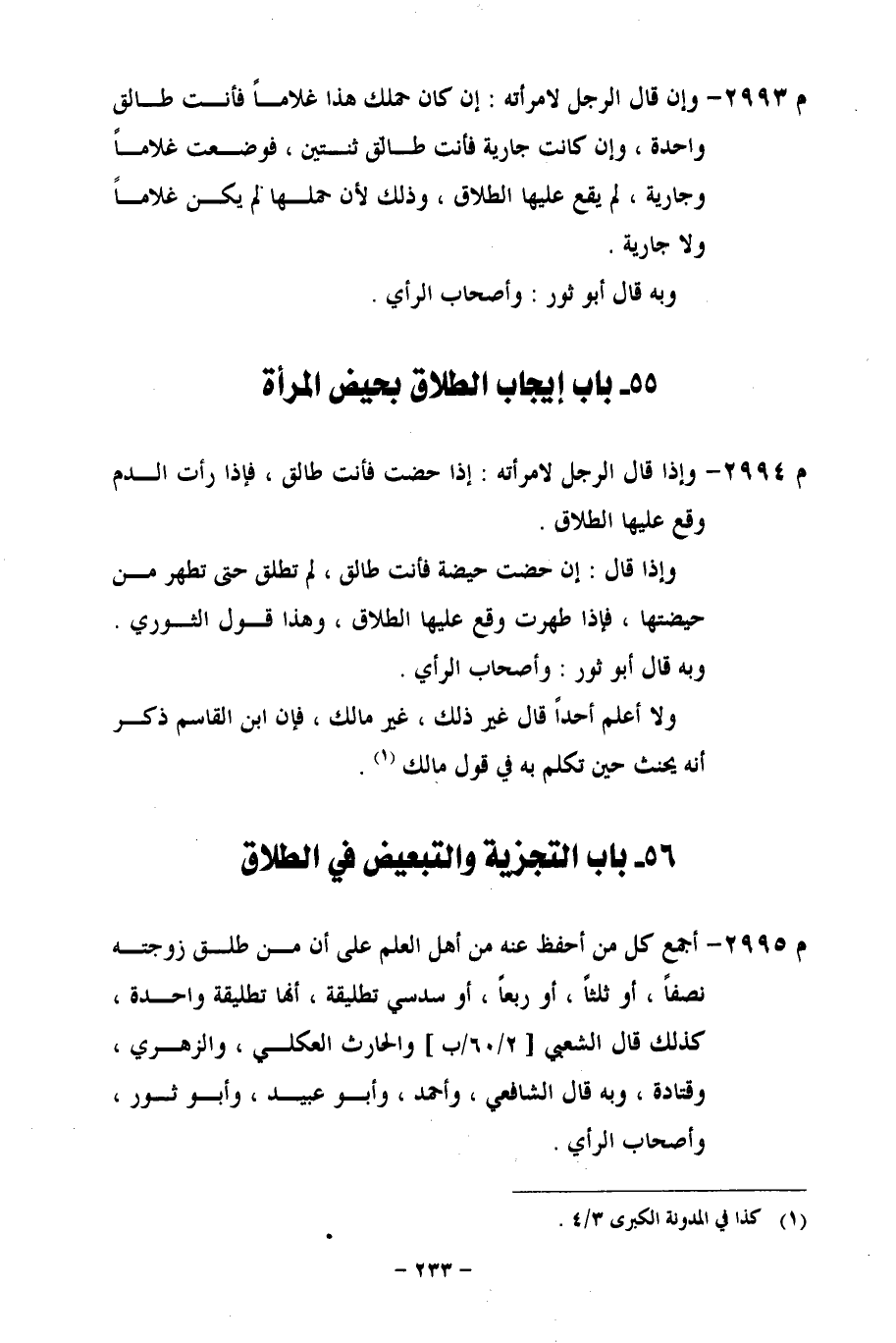 م 2995 - أجمع كل من أحفظ عنه من أهل العلم على أن من طلق زوجته نصفاً، أو ثلثاً، أو ربعاً، أو سدسي تطيقة، أنها تطليقة واحدة، كذلك قال الشعبي [2/ 60/ب]،والحارث العكلي، والزهري، وقتادة، وبه قال الشافعي، وأحمد، وأبو عبيد، وأبو ثور، وأصحاب الرأي.