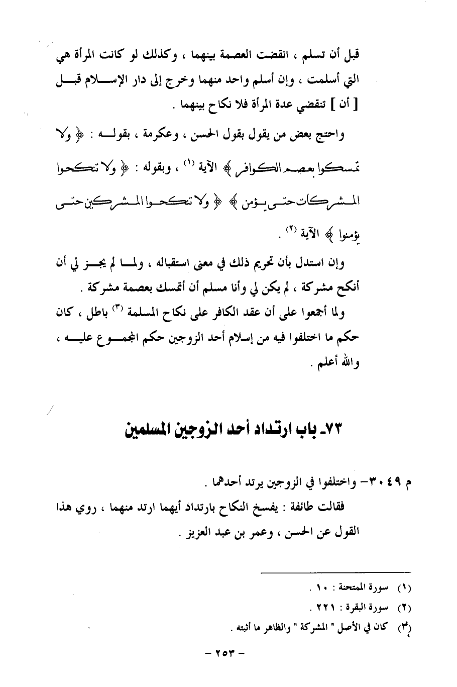73 - باب ارتداد أحد الزوجين المسلمين