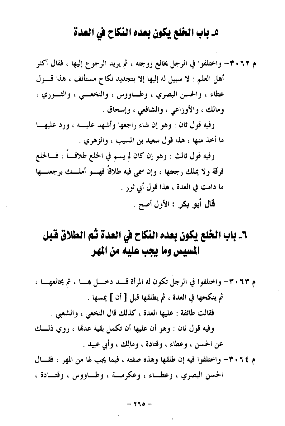 م 3062 - واختلفوا في الرجل يخالع زوجته، ثم يريد الرجوع إليها، فقال أكثر أهل العلم: لا سبيل له إليها إلا بتجديد نكاح مستأنف، هذا قول عطاء، والحصن البصري، وطاووس، والنخعي، والثوري، ومالك، والأوزاعي، والشافعي، وإسحاق.