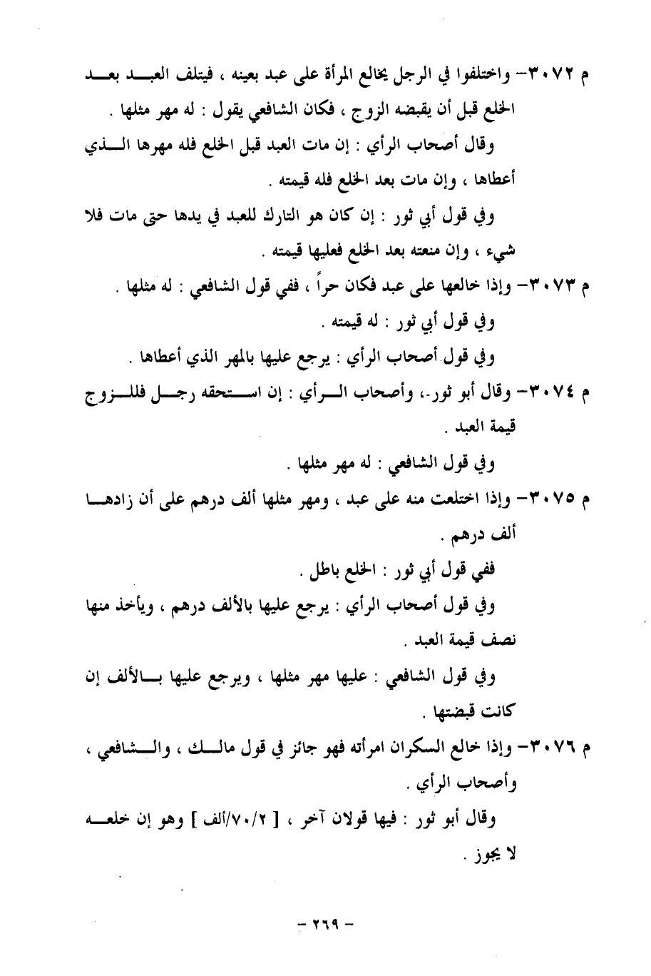 م 3073 - وإذا خالعها على عبد فكان حراً، ففي قول الشافعي: له مثلها. وفي قول أبي ثور: له قيمته.