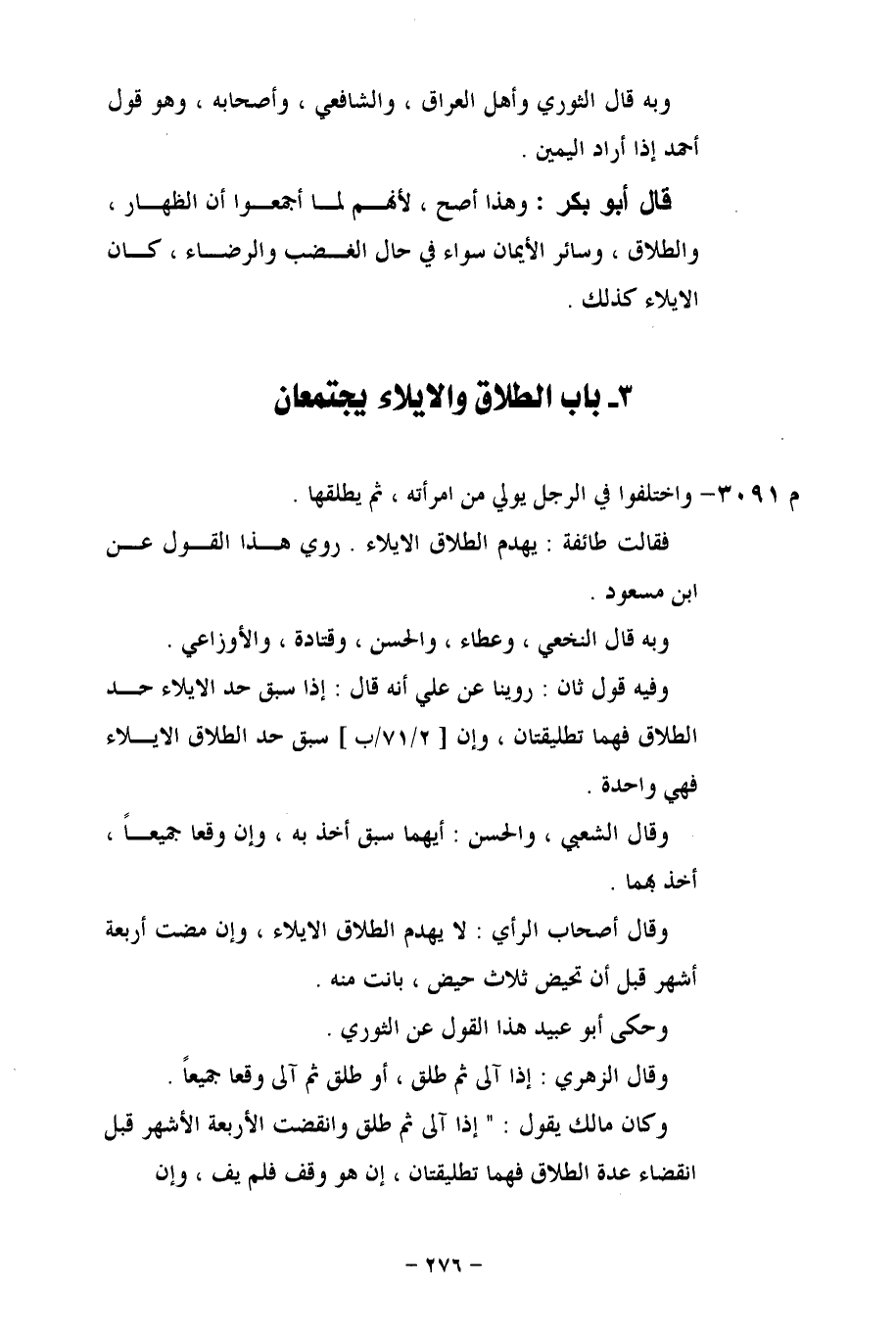 م 3091 - واختلفوا في الرجل يولي من امرأته، ثم يطلقها.