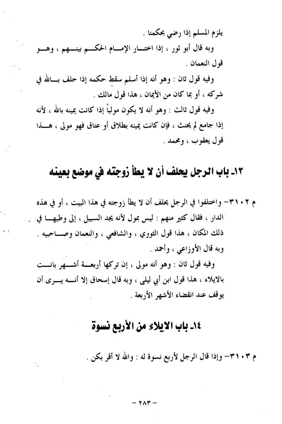 م 3103 - وإذا قال الرجل لأربع نسوة له: والله لا أقربكن.