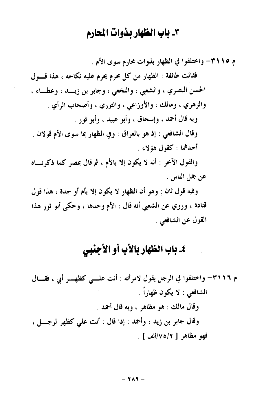 م 3115 - واختلفوا في الظهار بذوات محارم سوى الأم.