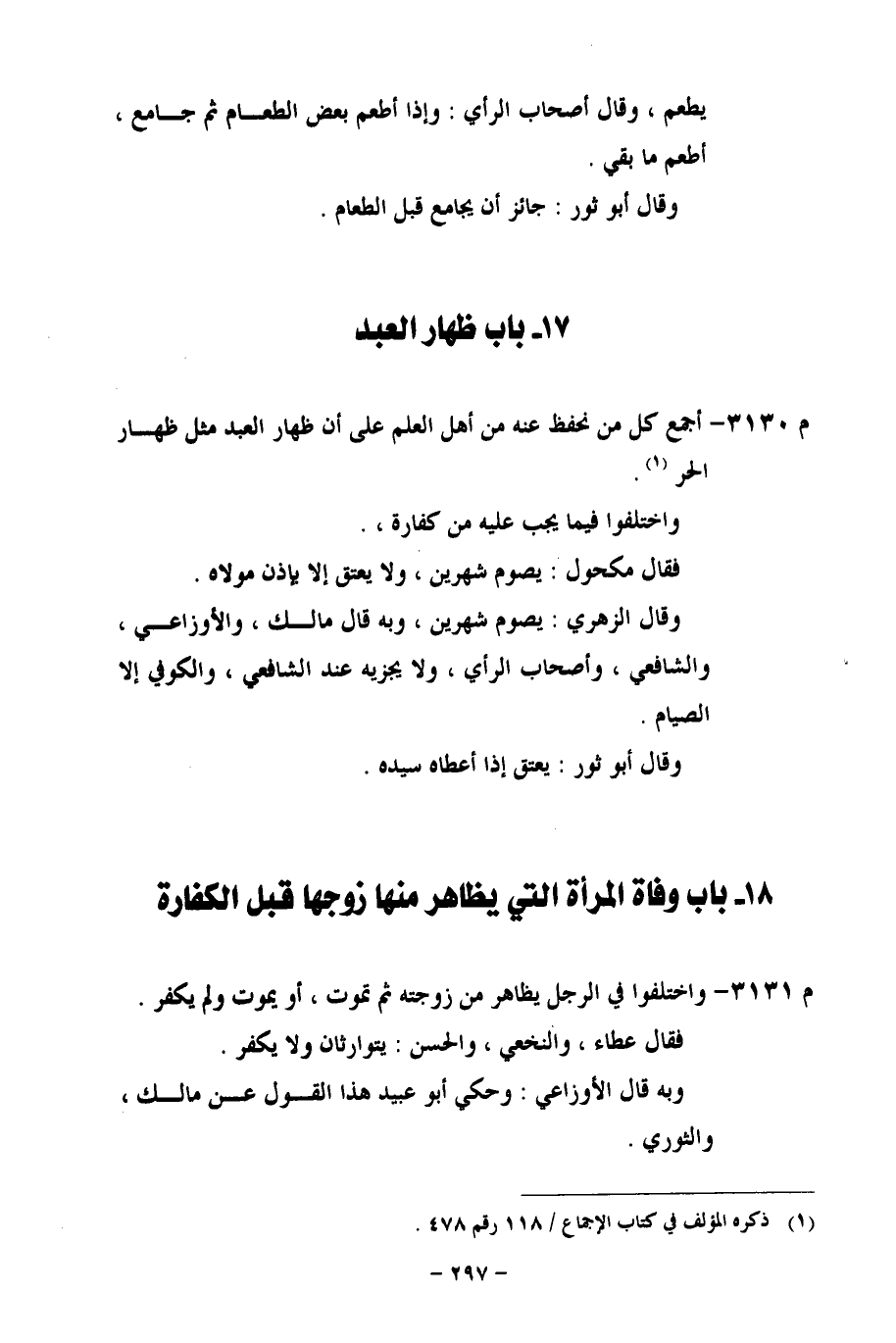 م 3130 - أجمع كل من نحفظ عنه من أهل العلم على أن ظهار العبد مثل ظهار الحر.