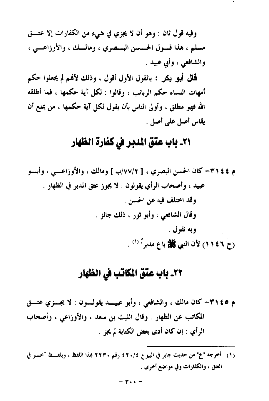 م 3144 - كان الحسن البصري، [2/ 77/ب] ومالك، والأوزاعي، وأبو عبيد، وأصحاب الرأي يقولون: لا يجوز عتق المدبر في الظهار.